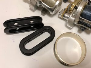 一般的には、アルミのラインブレーカーを使用することが多いかもですが、これはアルミのフレームに、真ん中が輪ゴムのデカいのを付けているわけで、このゴムがあるから、巻き付けたラインが滑らないと言う構造になっているわけです。